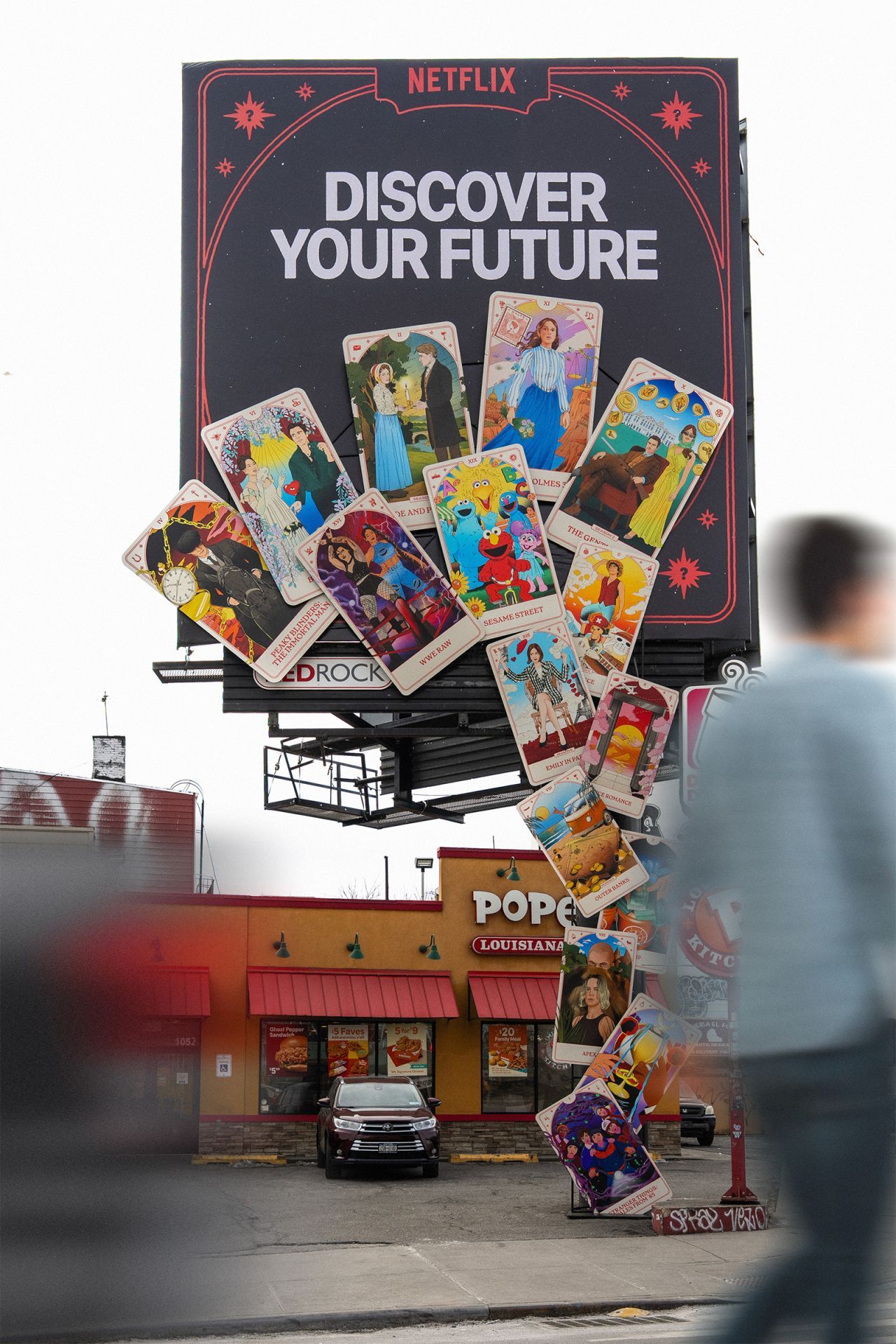 Extending the campaign to 34 markets around the globe, we sent influencers custom tarot card decks and created an interactive experience on Netflix's homepage (Tudum.com) where you can get your own digital Tarot reading. Answering a series of questions reveals three cards that tell a fortune of what you’re set to encounter this year, matched with a Netflix movie or series with a plot that reflects that path. Destiny, delivered via your watch list.